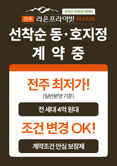 분양정보 및 견본주택 주소를 받아보실 수 있습니다. 동의합니다. [내용보기] 정보통신망 이용촉진 및 정보보호에 관한 법률을 준수하고 있습니다. 수집하는 개인정보 항목 서비스 이용을 위해 필요한 최소한의 범위로 개인정보를 수집합니다. 수집 및 이용목적관심 단지에 대한 분양 홍보 및 상담, 고객행사 보유 및 이용기간 이용목적이 달성된 후에는 예외없이 해당 정보를 지체없이 파기합니다. 등록